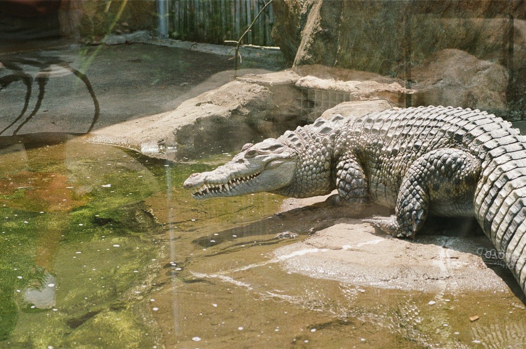 I’m including this one because I just love the contrast between my reflection in the glass and the Crocodile’s smiling faces.