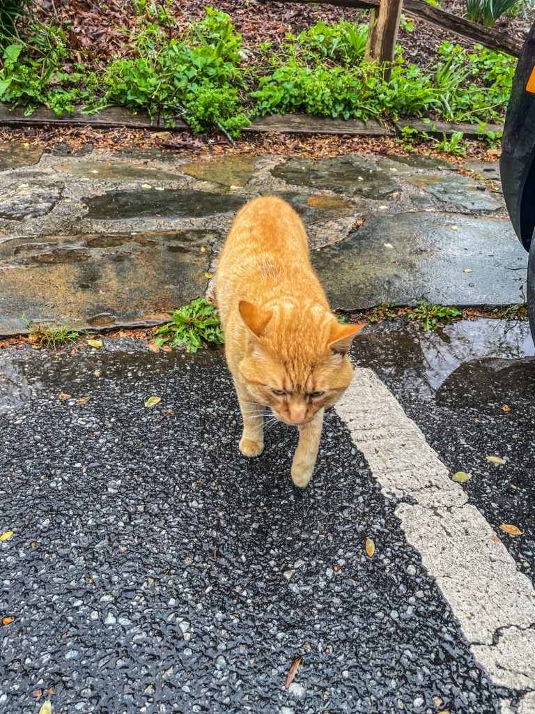 My very last photo was taken at Mountain Crossings, an outfitters in Neels Gap. They have an orange cat, and I was very lucky to meet him! He was vocal, and not at all happy about the rainy weather. He was also very cute, and sweet. A sweet boy indeed.