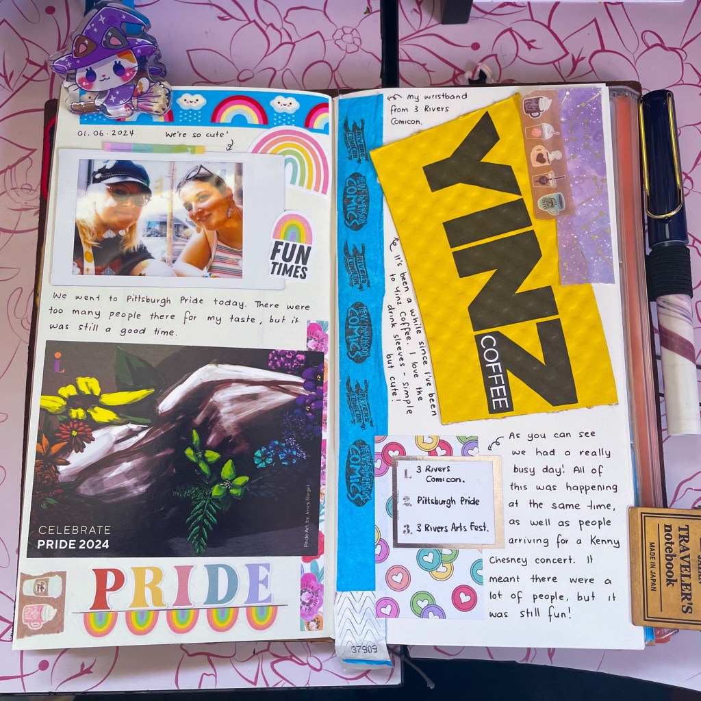 The photo above shows my first spread in this notebook! This is from the first weekend of June! I attended a local pride event, went to a local Comic-Con and checked out the local Arts Festival. It was very busy, but a lot of fun!