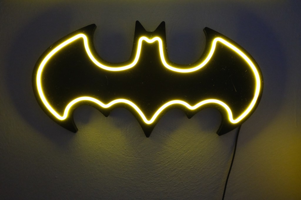I got a new piece of wall decor. This neon version of the bat-signal.
