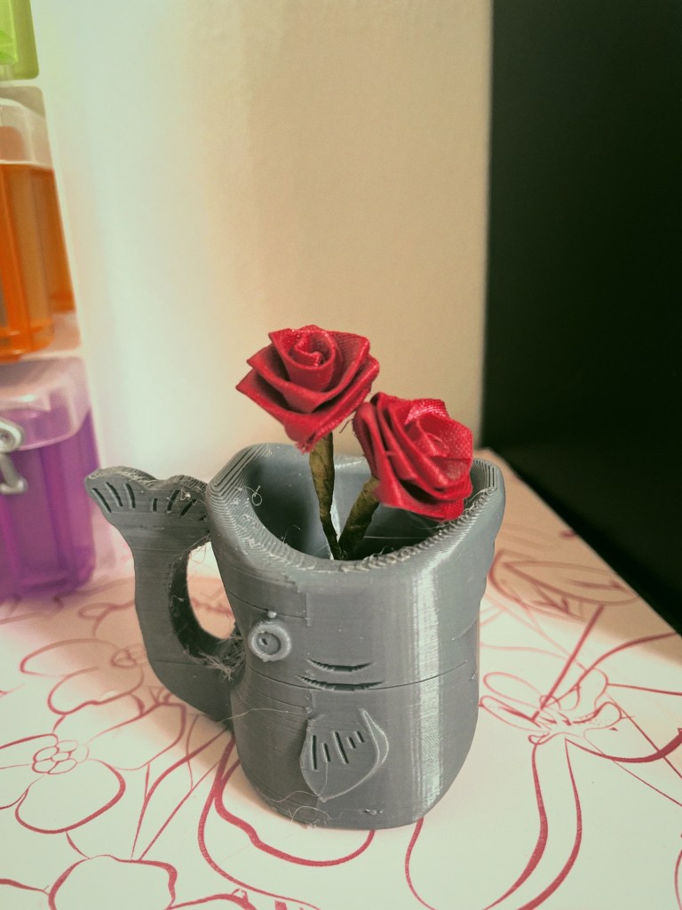 He now lives on my desk and has some cute little fake roses!
