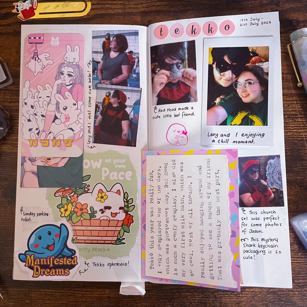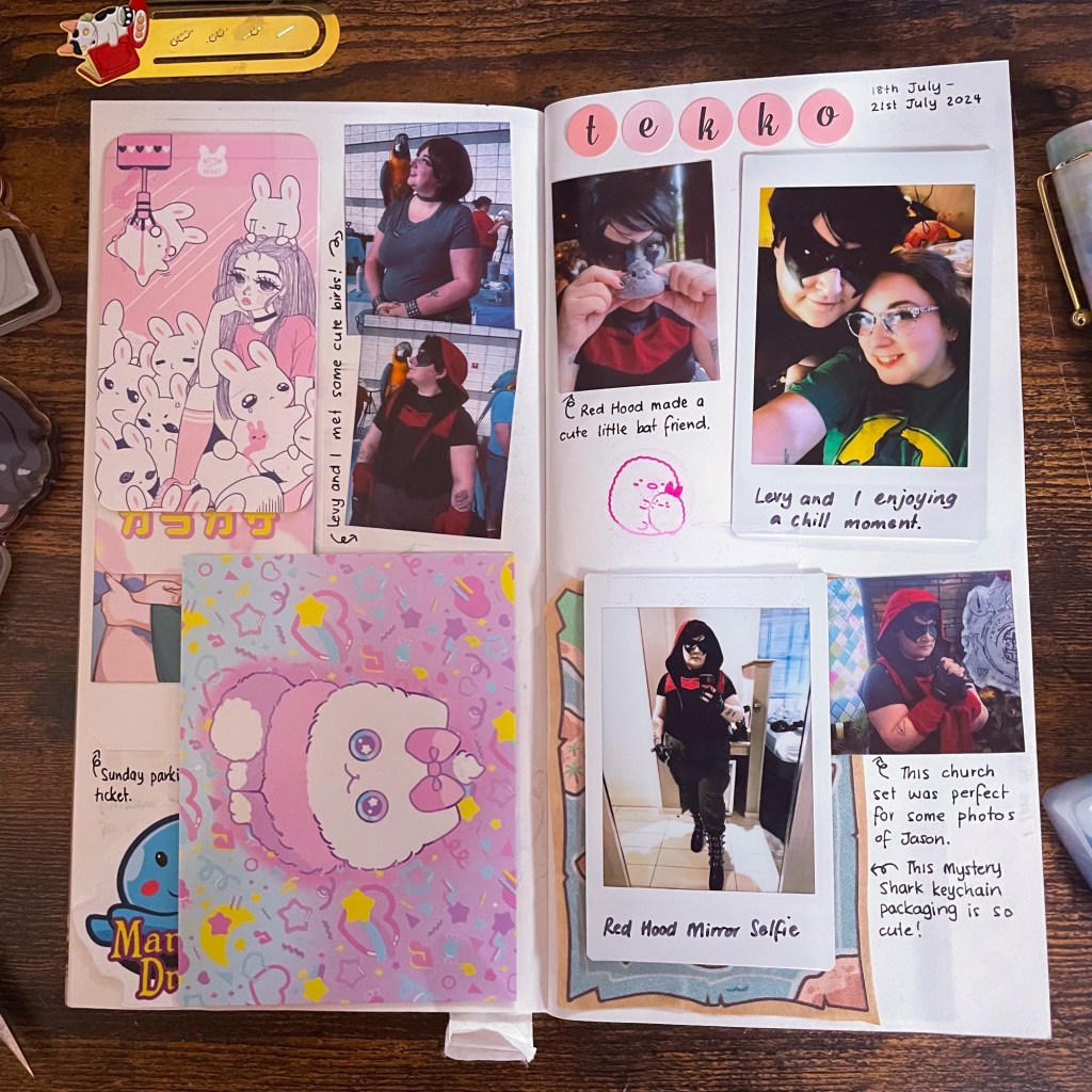 On the right page, which you can see more clearly are my favourite photos from the weekend. I cosplayed Red Hood/Jason Todd on Saturday, which you can see in the pictures!