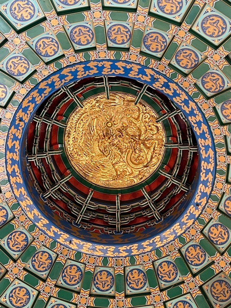 I met Mulan here. The gold disc in the centre of the ceiling is so pretty – having details of a Phoenix and a Dragon.