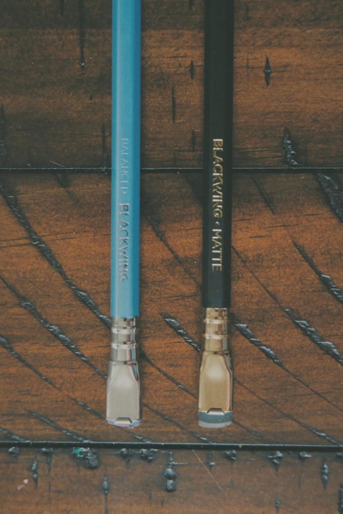 This photo features my absolute favourite sketching pencils of all time. These are Blackwing pencils, I have a blue pearl and a matte, and they are the best that I have used. They are also great for journaling.